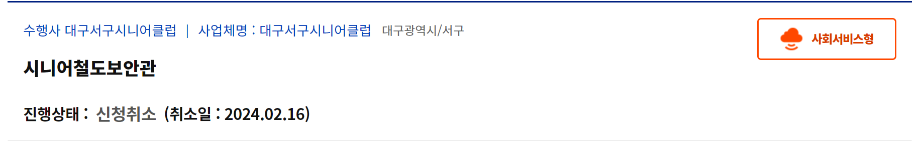 취소를 완료하시면 최종적으로 아래 사진과 같이 [신청취소]와 취소일이 표기됩니다.
